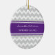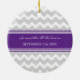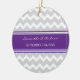 Customizable name and date wedding ornament in elegant and modern charcoal grey, dark purple, and white fun chevron zigzag pattern. Perfect as a christmas keepsake to remember your special day or celebrate your first christmas or as personalized wedding favours.