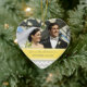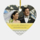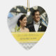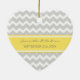 Customizable photo wedding ornament in elegant and modern charcoal grey, bright lemon yellow, and white fun chevron zigzag pattern. Perfect as a christmas keepsake to remember your special day or celebrate your first christmas or as personalized wedding favours.