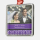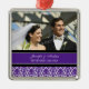 Customizable photo wedding ornament in elegant and modern eggplant dark purple, black and white classic floral damask pattern. Perfect as a christmas keepsake to remember your special day or celebrate your first christmas or as personalized wedding favours.