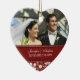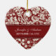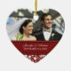 Customizable photo wedding ornament in elegant and modern red and cream off white classic floral damask pattern. Perfect as a christmas keepsake to remember your special day or celebrate your first christmas or as personalized wedding favours.