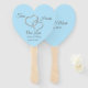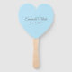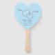 This paddle fan is shown in a lovely heart shape with silver tone crystal hearts with fancy script text with sample names and date, customize and change the names and date to yours.