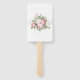 This wedding paddle fan is shown with pretty pink vintage roses and sample names and date.