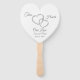 This paddle fan is shown in a lovely heart shape with silver tone crystal hearts with silver colour fancy script text with sample names and date, customize and change the names and date to yours. Back side is a light silver colour.
