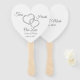 This paddle fan is shown in a lovely heart shape with silver tone crystal hearts with silver colour fancy script text with sample names and date, customize and change the names and date to yours. Back side is a white colour.