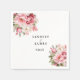 This wedding designed paper napkin is shown with a romantic pink peony print.