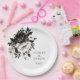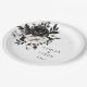 Wedding paper plate is shown with a lovely black and white floral print.