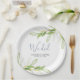 These wedding paper plates feature watercolor leaf foliage. The words "We Did" are set in modern script typography. A botanical choice for weddings, a rehearsal dinner or eloped party. To see more designs like this visit www.zazzle.com/dotellabelle