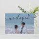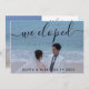 Announce your recent wedding to family and friends! This modern wedding announcement card design features a horizontal photo of the new husband and wife on the front with a white brushed "We Eloped!"