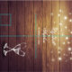 Wedding Photo Booth Backdrop Templates - Elegant Lettering Script, Vintage Champagne Glasses and String Lights on Rustic Wood Background.