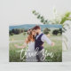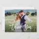 Modern Brush Script Wedding Photo Thank You Card - White Script, Rustic Wood Back
