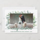 Modern Elegant Calligraphy Script Merry Christmas Watercolor Holiday Pine Greenery Wedding Photo Card - Green Script