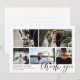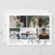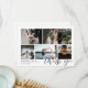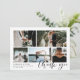 Say thank you to your wedding guests with a photo collage where you can feature five of your own lovely wedding photos. Add your names and wedding date in a modern black font. Thank you is written in a charming calligraphy script. On the back you can write by hand a personal thank you message on the faintly lined background.