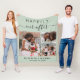 Sage green wedding photo collage blanket for the perfect keepsake of your special day. "Happily Ever After" is written across the top in a mix of simple typography and a stylish script with swashes. Personalize with three photos, your first names and your wedding date.