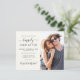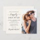 Budget-friendly light cream wedding save the date announcement featuring your photo and "Happily Ever After" in a mix of simple modern typography and a stylish script with swashes. Personalize your save the date details and add your names in a signature-like script. Your names and wedding date are joined by a heart on the back.