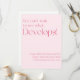 Capture the memories with this fun and charming wedding camera sign! Featuring the phrase "We can't wait to see what develops!" in a modern, elegant font, this sign is perfect for a Polaroid or disposable camera station at your wedding. Encourage guests to snap a photo, leave it behind, and create a keepsake full of candid moments.
