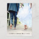 Stylish elopement or smaller wedding announcement to inform family and friends that your wedding plans changed, and you eloped or reduced the number of guests at your wedding, and to invite them to a wedding reception or celebration party. The front features your favourite wedding photo, your first names and wedding date. The reverse side features "Happily Ever After Party" in a mix of simple typography and an elegant script with swashes, and you can personalize your message and invitation in more detail and your names in a signature-like script.