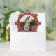 Your favourite photo is accented with gold swirls on cranberry red (or any background colour) on these paper Christmas ornament cards, a memorable greeting card for family and friends. Printed on your choice of paper, default is Pearl Ice, measures 5.25" x 5.25" and includes ribbon to hang the cards. MORE styles in our collection.*TIP: Upload a high resolution, photo cropped to square shape to ensure your photo is centred correctly. MORE designs in our collection.