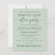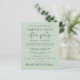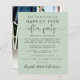Affordable sage green save the date announcement for a reception or party to celebrate your elopement or private wedding. The front features "Save the Date For Our Happily Ever After Party" in a mix of simple typography and an elegant script with swashes, your customized wedding announcement, party or reception save the date details and your names in a signature-like script. The back features your favourite wedding photo, first names and wedding and reception dates.