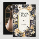 Moody Black and White with Gold floral peony boarder thank you card. Features simple and modern typography with simulated thin gold foil inner boarder and elegant black and gold photo frame on the reverse side. 💫 Customize your details by simply clicking on the "PERSONALIZE" button to begin editing. 🌺✨🎨 Need a styled-for-you design? Click the Contact Botton below!