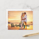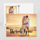 Pretty and modern thank you note postcards with a modern font that will please most couples. Just upload your photo with the one pictured. A landscape picture is best, but you can enlarge a square shaped to make it fit. Photo for the back, just upload the picture to replace the one pictured and use the tools to move into position (the - or + sign and the directional arrows).
