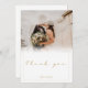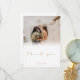 Celebrate your special day with this modern and romantic wedding thank you card, featuring a stunning white gradient faded photo framed by an elegant printed gold border. The sophisticated design includes a gold effect "thank you" script, with ample space to showcase your favourite wedding moment for a personalized touch. Flexible options allow you to update the message, names, and colours, making it the perfect way to express heartfelt gratitude and appreciation to your guests.