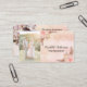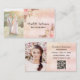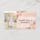 A boho style business card for a wedding photographer or wedding planner. Rose gold, blush pink gradient background decorated with pampas grass and blush pink florals. Personalize and add a wedding photo, your name and title or text. The name is written with a modern hand lettered style script with swashes.