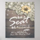 Pick A Seat Not A Side Wedding Sign Poster - Vintage Lace, Sunflower and String Lights on Rustic Wood Background.