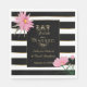 Wedding napkins for a Pink Floral Bold Black and White Stripes themed wedding, matches our invitations and Save the dates in this same design.