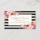 Wedding Watercolor Floral Pink Blush Gold and Black & White Stripes Registry Insert Card