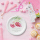 Beautiful pink red gumnut eucalyptus watercolor art wedding paper plates. Edit these paper plates with your own bride and grooms names and wedding date. Ideal for an australian eucalyptus wedding or a pink red floral botanical themed wedding. Modern botanical watercolour painting and design by Sarah Trett. www.sarahtrett.com for www.mylittleedenweddings.com