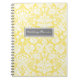 Spiral wedding planner journal with elegant bright canary yellow, grey and white classic floral damask vintage pattern, with customizable text to add your own message. Perfect for organizing wedding plans and details, a great gift for the bride to be.