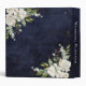 A must have when planning your wedding, this beautiful antique, shabby chic, white rose bouquets in upper left and lower right corners, against the textured navy blue background. Also a speckled rosegold splatter layer included.