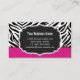 Trendy Stylish Zebra Print Diamond Girly Hot Pink Pattern Personalized Business Card Template. All text style, colours, sizes can be modified to fit your needs. This is design is perfect for Fashion Stylist, Hairstylist, Hairdresser, Jewellery Designer, Nail Technician, Cosmetologist, Makeup Artist and more. If you need any customization, please contact me.