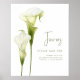 This wedding Poster Favours features a sophisticated, minimalist style. Delicate calla lilies in soft green hues are depicted against a light background, creating an atmosphere of sophistication and tranquillity. The design is modern, airy, and perfect for a stylish, romantic wedding.