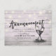 Modern Wedding Announcement Postponement Photo Postcard Templates - Elegant Lettering Script, Vintage Champagne Glasses and String Lights on Rustic Wood Background.
