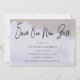 A soft blue / purple watercolor wash covers both sides of this elegant Save Our New Date card. Gold glitter decorates the top on the front and bottom on the back. On the front, Save Our New Date is written in a large modern script font and then your new wedding details follow in an elegant serif text. Your favourite photo is on the back. Your names, wedding date and location are below.