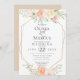 WEDDING INVITATION | Bouquets of pretty spring time flowers in shades of coral, yellow, ivory and pink with delicate greenery top and bottom. Details written inside a gold geometric multi faceted frame. Reverse is a complimentary coordinated colour. Customize text, font style, colour and size. We created this template is to make it easy for you to personalize with your own information. This is part of a complete Wedding Stationery Suite with matching wedding, baby shower and other event stationery designed by WhimsicalArtwork™.