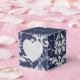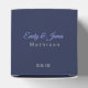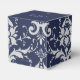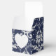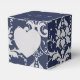Shown here is the square box style favour box. This box coordinates with the temple wedding invitation and reception invitation. Has the Silver Coronation pattern on all sides of this favour box. A heart shaped cutout on front. Personalized names of the newlyweds across the top flap in coordinating colours to the Sapphire Blue top. Personalized wedding date on top flap. To personalize the names, click the "unfolded" button after clicking customize button. Customize this item to your desires.