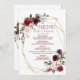 blue metallic Wedding menu card floral maroon
