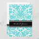 Wedding reception invitation cards for separate reception in elegant and contemporary turquoise light sky blue, black and white elegant and chic classic floral damask vintage pattern. Customize these invitations with your wedding details to invite your guests to your celebration after a private or destination wedding. Available in matching products for all of your wedding needs.