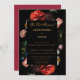 Wedding Reception Party Invitation Dark Red and Black Floral. Copper coloured text is fully customizable. Flower background. The back of the card is set in a dark red background but you can chose any colour you like. Our ALEXANDRIA wedding suite collection is filled with florals on both black and red backgrounds all using a copper coloured text. Moody, elegant and modern.