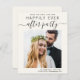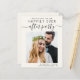 Modern budget-friendly light cream elopement / private wedding announcement and reception save the date that features your photo and "Save The Date For Our Happily Ever After Party" in a mix of simple typography and a chic script with swashes. Under your photo, add your names and reception date and location; on the back side, personalize your wedding announcement, input your wedding website address to create a QR code for your guests to scan for more information and add your names in a signature-like script.