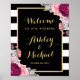 Wedding Reception Sign Burgundy Floral Stripes