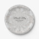 Wedding reception silver grey white gold cocktail paper plates. Elegant simple printed design. Text can be personalized. Image copyright Marg Seregelyi Photography.