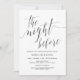 This is the Modern Black Simple Hand lettered Calligraphy, Wedding Rehearsal Dinner Invitation card (The Night Before). A perfect card, to Invite your beloved family and guests, on your Wedding rehearsal dinner party invitation. Add your celebration details in the matching font / lettering and colours.
