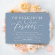 Planning a wedding Rehearsal Dinner celebration with the to-be Bride and to-be Groom, before their BIG day? Invite the guests with this "the night before forever" Perfect modern romantic dusty blue Wedding Rehearsal Dinner Invitation Card.