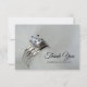Personalize the elegant Wedding Rings Flat Thank You Note Cards with your own words of gratitude on the second side. Suitable for use after your engagement party, bridal shower or marriage. These classy custom wedding thank you notes features a close up photograph of a round diamond engagement ring and wedding band set with a grey background.