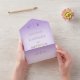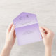AVAILABLE WITH OR WITHOUT A QR CODE TO SCAN. This simple yet elegant design has a modern look, with two interlocked gold wedding rings on a soft white blur overlay on a soft lavender background. Personalized All-In-One invitations are a unique combination of both a beautifully printed custom invitation with an easy to tear off perforated RSVP postcard. And they are so easy to use! You simply fold, then seal the back flap with the three included clear stickers, and mail. And when your guests receive your custom invite, they just tear the perforated RSVP Card off and drop it back in the mail to you!