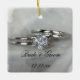 Customize the pretty Wedding Rings on Grey Square Shaped Ornament with the personal names of the bride and groom and specific marriage ceremony date. This classy custom wedding ornament features a digitally enhanced close up photograph of a diamond wedding ring set with a soft grey background.