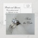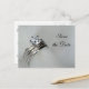 Announce your upcoming nuptials with the elegant Wedding Rings Save the Date Postcard. This classy custom marriage keep the date card features a close up photograph of a diamond engagement ring and wedding band set with a white tulle background.